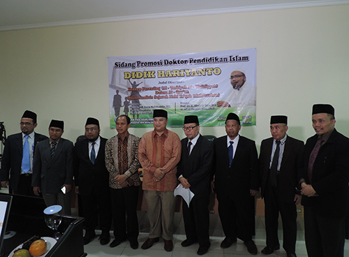 Sidang promosi Doktor ini dipimpin oleh Direktur Sekolah Pascasarjana Universitas Ibn Khaldun Bogor sekaligus menjadi Ketua Promotor yaitu Prof. Dr. KH. Didin Hafidhuddin, MS. Kemudian, Dr. H. E. Mujahidin, M.Si dan Dr. H. Ulil Amri Syafri, Lc., MA sebagai Co-Promotor. Kemudian turut menghadirkan tim penguji yaitu; Prof. Dr. H. Abuddin Nata, MA dan H. Adian Husaini, M.Si., Ph.D.