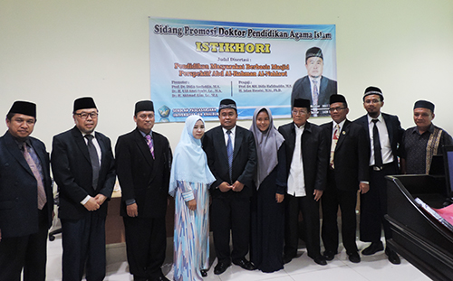 Sidang promosi Doktor ini dipimpin oleh Rektor Universitas Ibn Khaldun Bogor yaitu Dr. H. E. Bahruddin, M.Ag, kemudian Prof. Dr. Didin Saefuddin, M.A. sebagai Ketua Promotor. Dr. H. Ulil Amri Syafri, Lc., M.A., dan Dr. H. Akhmad Alim, Lc., M.A. sebagai Co-Promotor. Kemudian turut menghadirkan tim penguji yaitu; Prof. Dr. KH. Didin Hafidhuddin, M.S., dan H. Adian Husiani, M.Si., Ph.D.