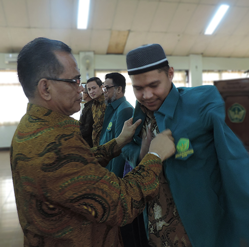 Sebelum acara dimulai dilaksaksanakan pemberian Jas Almamater secara simbolis oleh Rektor Universitas Ibn Khaldun Bogor dan disaksikan oleh Direktur Sekolah Pascasarjana Universitas Ibn Khaldun Bogor.