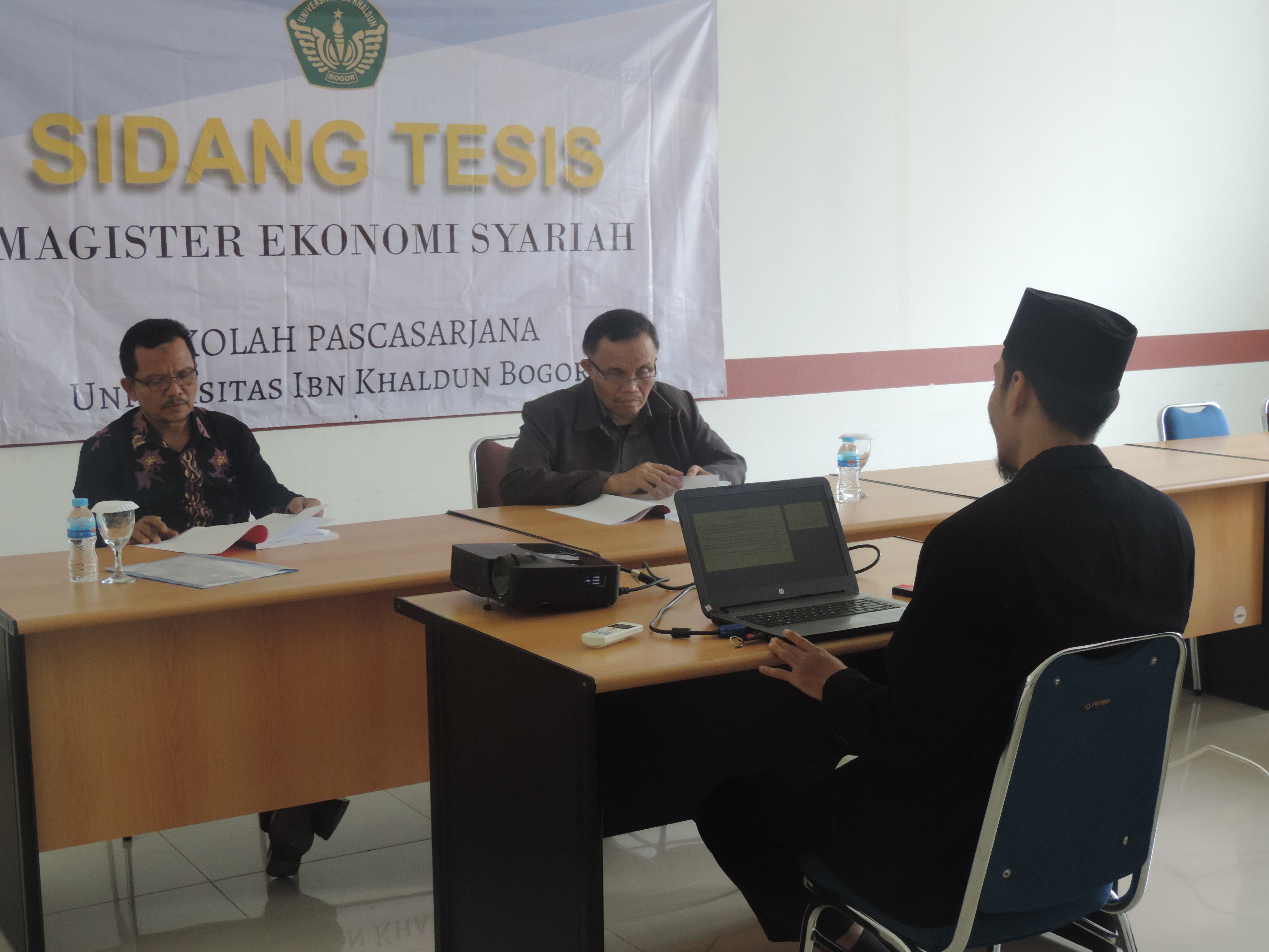 Bogor, 16 Maret 2019- Sekolah Pascasarjana Universitas Ibn Khaldun kembali menyelenggarakan sidang tesis bagi mahasiswa Magister Ekonomi Syariah. Dengan penguji yang terdiri dari Wakil Direktur Sekolah Pascasarjana Ibn Khaldun, H.Hendri Tanjung. Ph.D, beserta Dr. Ibdalsyah, M.A., dan Dr.H.Sutisna, M.A.