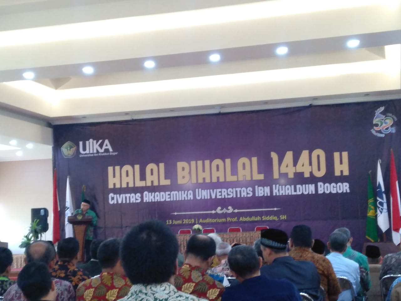 Bogor, 13 Juni 2019 – Memasuki bulan Syawwal, Universitas Ibn Khaldun Bogor kembali menyelenggarakan agenda Halal Bihalal dengan melibatkan seluruh civitas akademika nya. Acara yang diselenggerakan di aula Gedung Prof. H. Abdullah Siddiq UIKA tersebut dihadiri oleh beberapa tokoh dari berbagai elemen. Baik TNI, POLRI dan anggota lembaga pemerintahan.