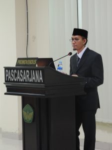 Sidang promosi Doktor ini dipimpin oleh Rektor Universitas Ibn Khaldun Bogor yaitu Dr. H.E. Bahruddin, M.Ag. Kemudian Prof. Dr. H. Ahmad Tafsir, H. Adian Husaini, M.Si., Ph.D., Dr. H.E. Mujahidin, M.Si., sebagai promotor. Turut menghadirkan tim penguji yang terdiri dari Prof. Dr. KH. Didin Hafidhuddin, M.S., dan Dr. H. Abas Mansur Tamam, Lc., M.A.