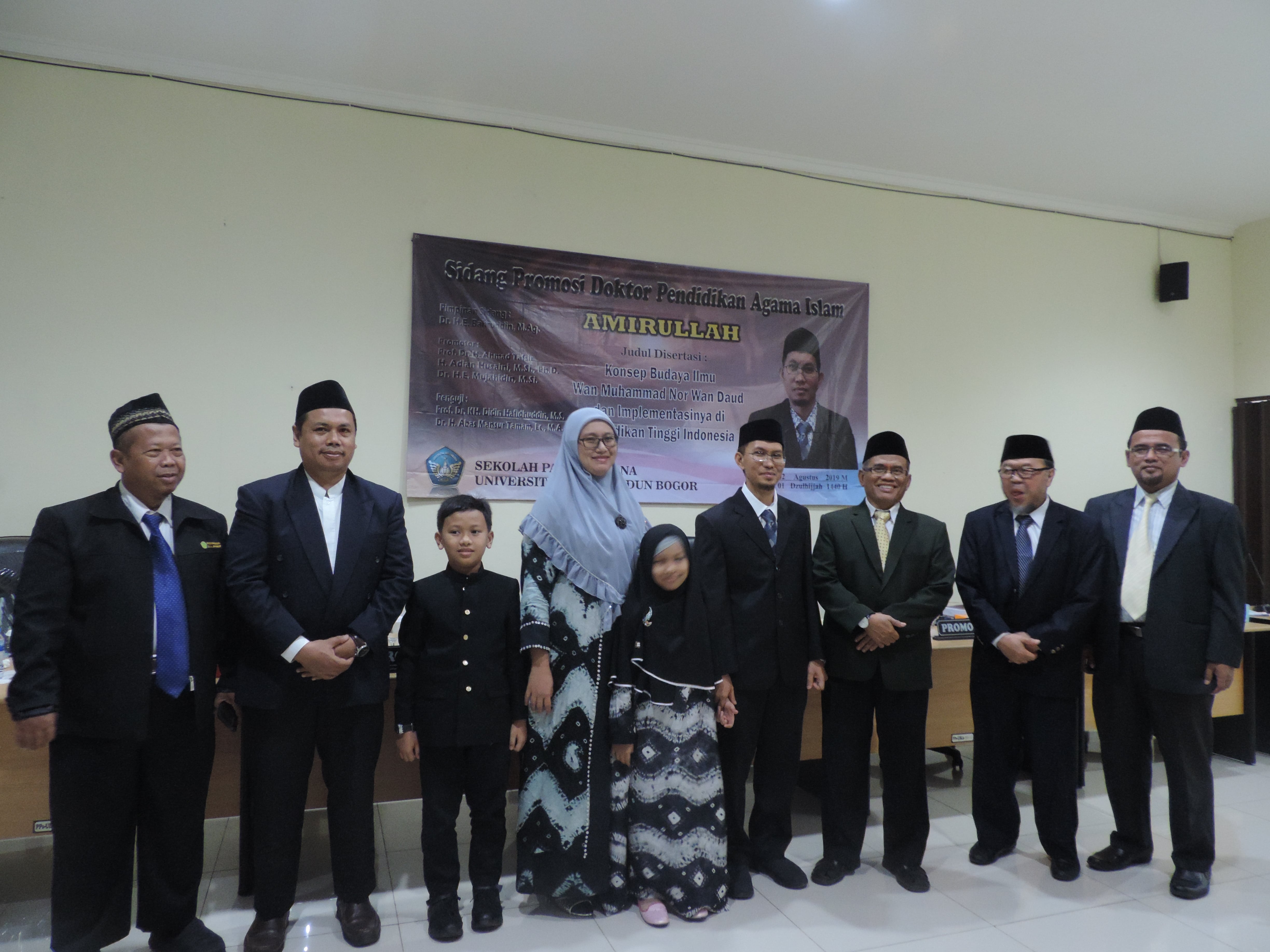 Bogor, 02 Agustus 2019 – Sidang terbuka dalam promosi Doktor Pendidikan Agama Islam dari Promovendus Amirullah. Acara diadakan di ruang sidang gedung KH. Sholeh Iskandar Sekolah Pascasarjana Universitas Ibn Khaldun Bogor dengan judul Disertasi “Konsep Budaya Ilmu Wan Muhammad Nor Wan Daud dan Implementasinya di Pendidikan Indonesia”.