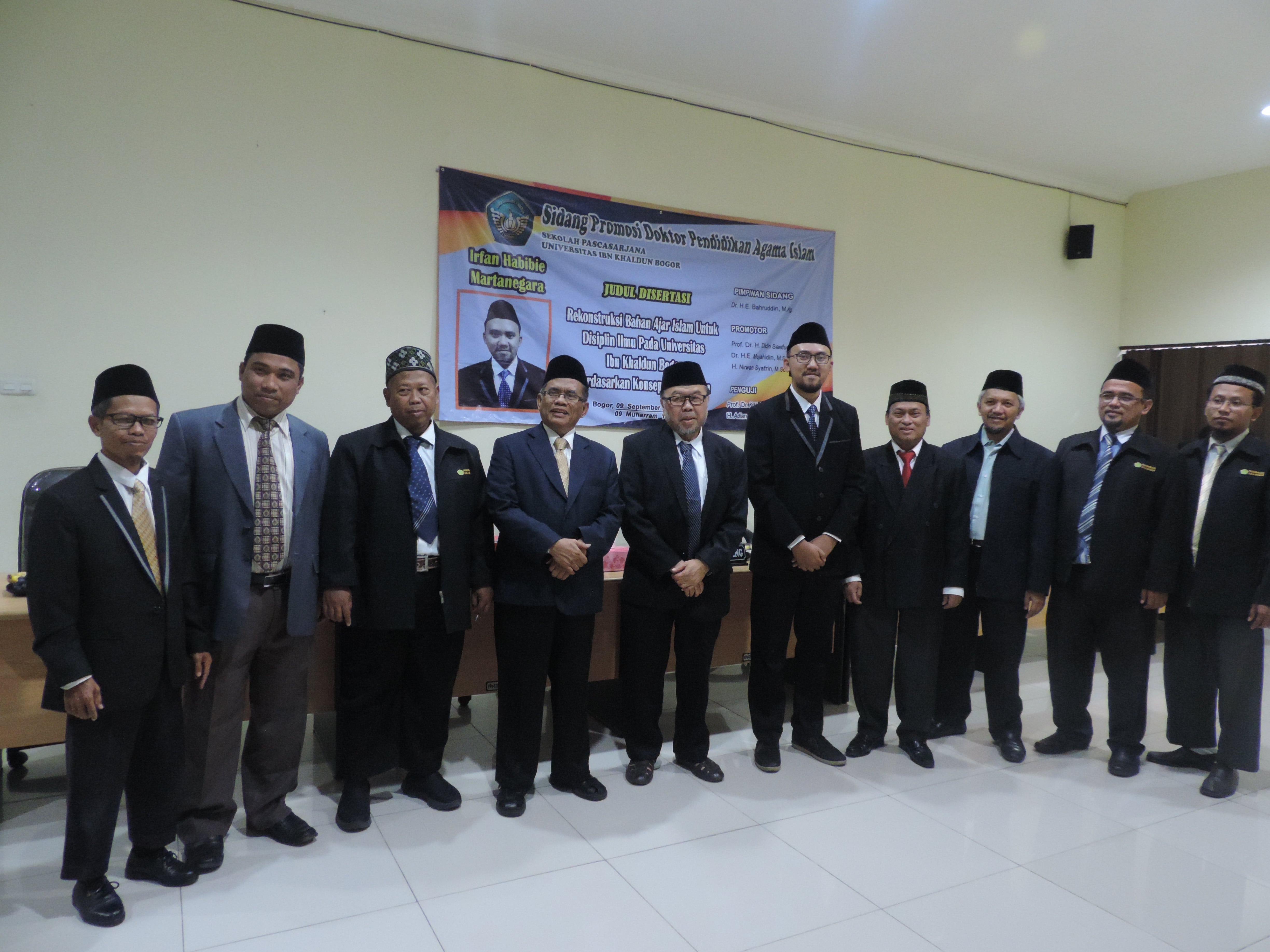 Bogor, 10 September 2019 – Sidang terbuka dalam promosi Doktor Pendidikan Agama Islam dari Promovendus Irfan Habibie. Acara diadakan di ruang sidang gedung KH. Sholeh Iskandar Sekolah Pascasarjana Universitas Ibn Khaldun Bogor dengan judul Disertasi “Rekonstruksi Bahan Ajar Islam Untuk Disiplin Ilmu Pada Universitas Ibn Khaldun Bogor Berdasarkan Konsep Sains Islam”.