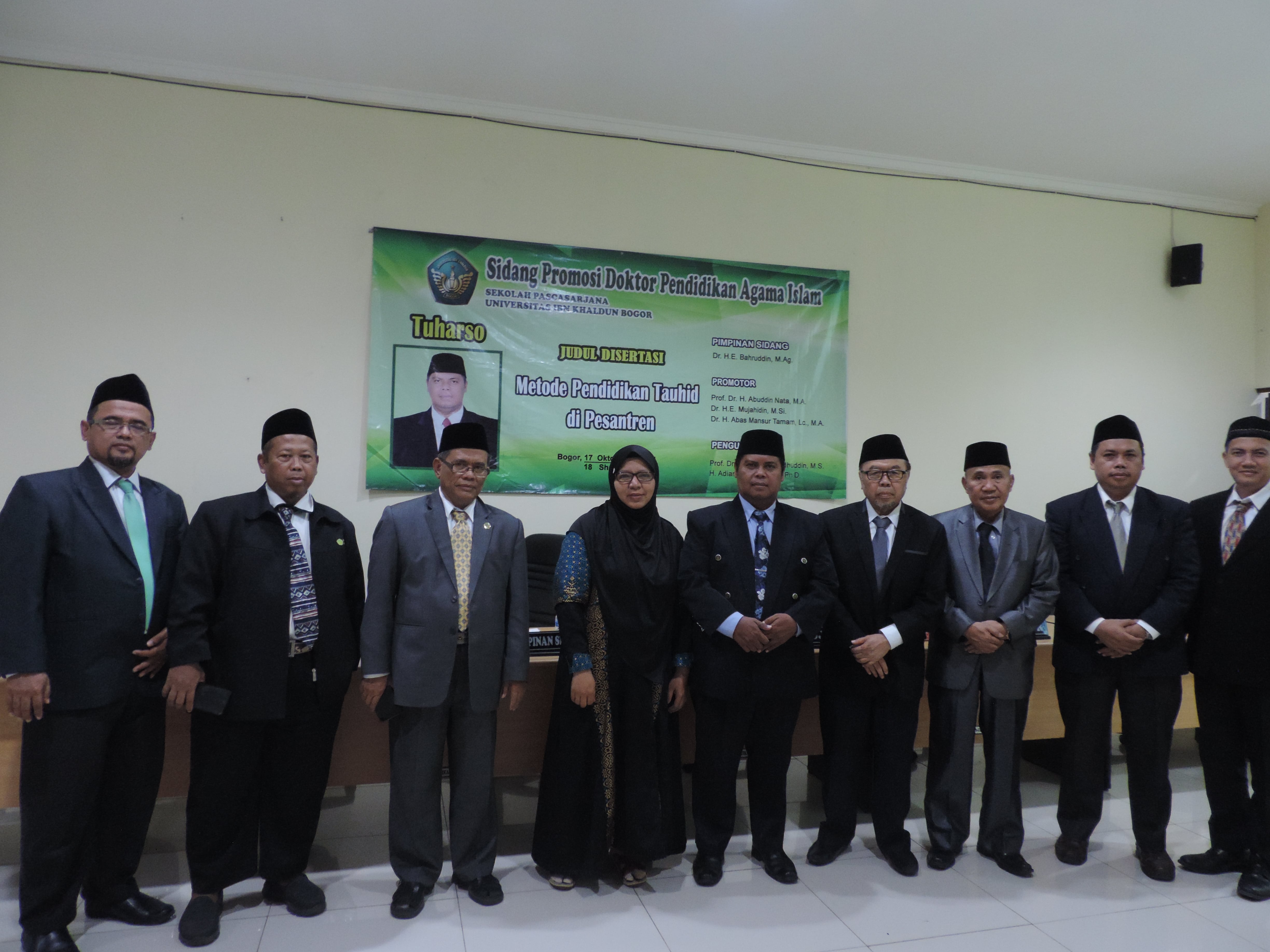 Bogor, 17 Oktober 2019 – Sidang terbuka dalam promosi Doktor Pendidikan Agama Islam dari Promovendus Tuharso. Acara diadakan di ruang sidang gedung KH. Sholeh Iskandar Sekolah Pascasarjana Universitas Ibn Khaldun Bogor dengan judul Disertasi “Metode Pendidikan Tauhid di Pesantren”.