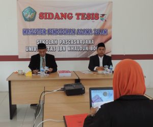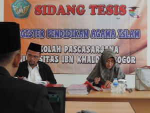 Bogor, 19 Oktober 2019 – Sabtu, 19 Oktober 2019, Program Magister Pendidikan Agama Islam Universitas Ibn Khaldun Bogor kembali melaksanakan sidang tesis. Peserta untuk sidang tesis terdiri dari 11 orang mahasiswa. Sidang berjalan dengan tema yang berbeda dari masing-masing mahasiswa.