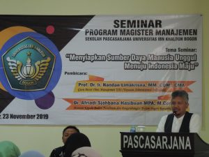Bogor, 23 November 2019 – Program Magister Manajemen Sekolah Pascasarjana Universitas Ibn Khaldun (UIKA) Bogor kembali menyelenggarakan event seminar di bidang Manajemen Sumber Daya Manusia. Bertempat di Ruang Sidang SPs-UIKA Bogor bertemakan “ Menyiapkan Sumber Daya Manusia Yang Unggul Menuju Indonesia Maju”.