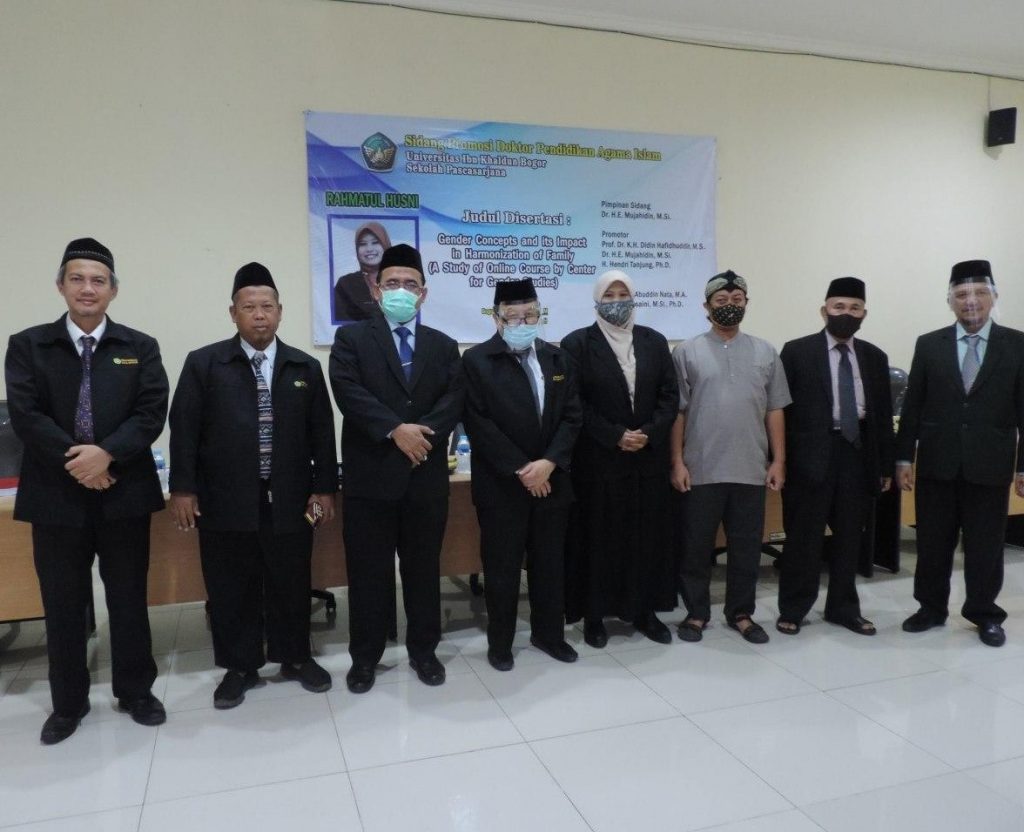 Bogor, 29 Juli 2020 M/ 08 Dzulhijah 1441 H – Sidang Terbuka Promosi Doktor Pendidikan Agama Islam dari Promovenda Rahmatul Husni. Acara diadakan di ruang sidang gedung KH. Sholeh Iskandar Sekolah Pascasarjana Universitas Ibn Khaldun Bogor dengan judul Disertasi “Gender Concepts and its Impact in Harmonization of Family (A Study of Online Course by Center for Gender Studies)”.