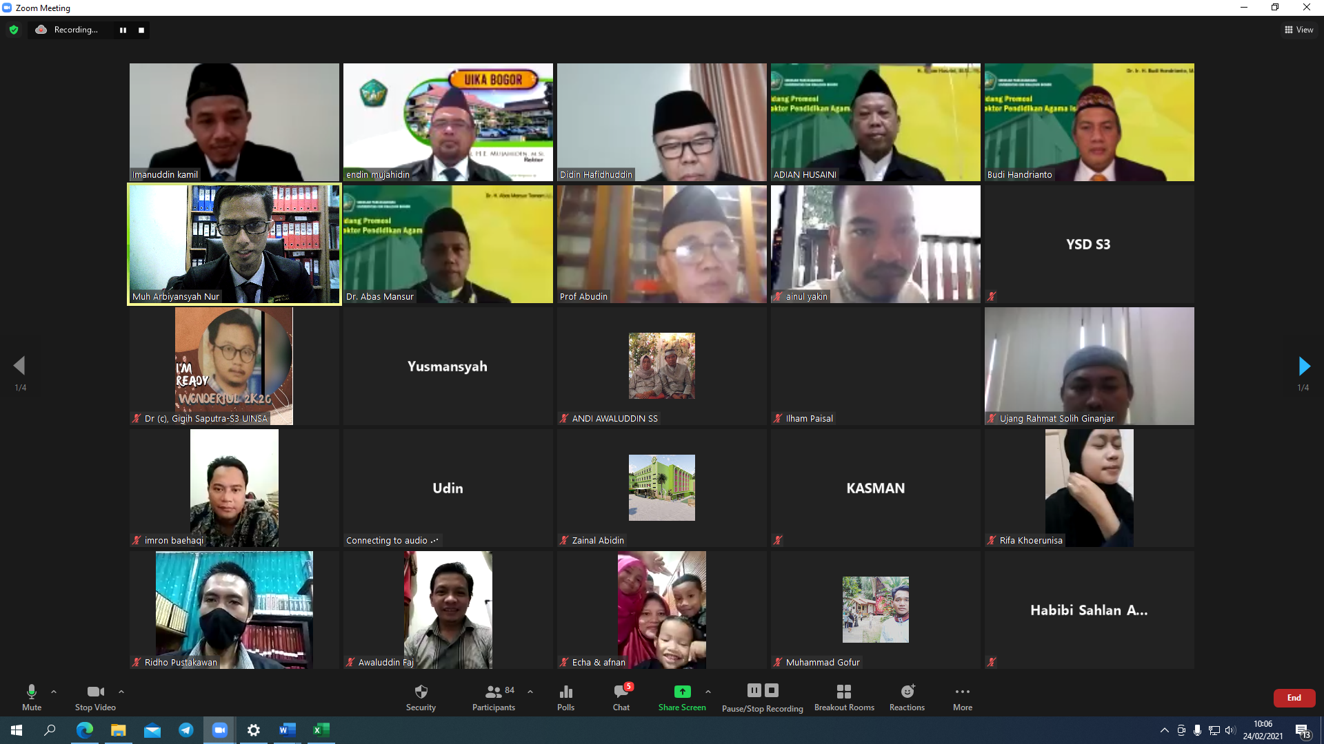 Pelaksanaan sidang diadakan secara daring (online) dengan judul Disertasi “Kurikulum Tarbiyah Ruhiyyah Pada Kokurikuler dan Ekstrakurikuler SMPIT (Studi Analisis Konsep Tarbiyah Ruhiyyah Al-Nadwi dan Field Research di SMPIT Abdan Syakuro Lampu Iman Karawang) ”.