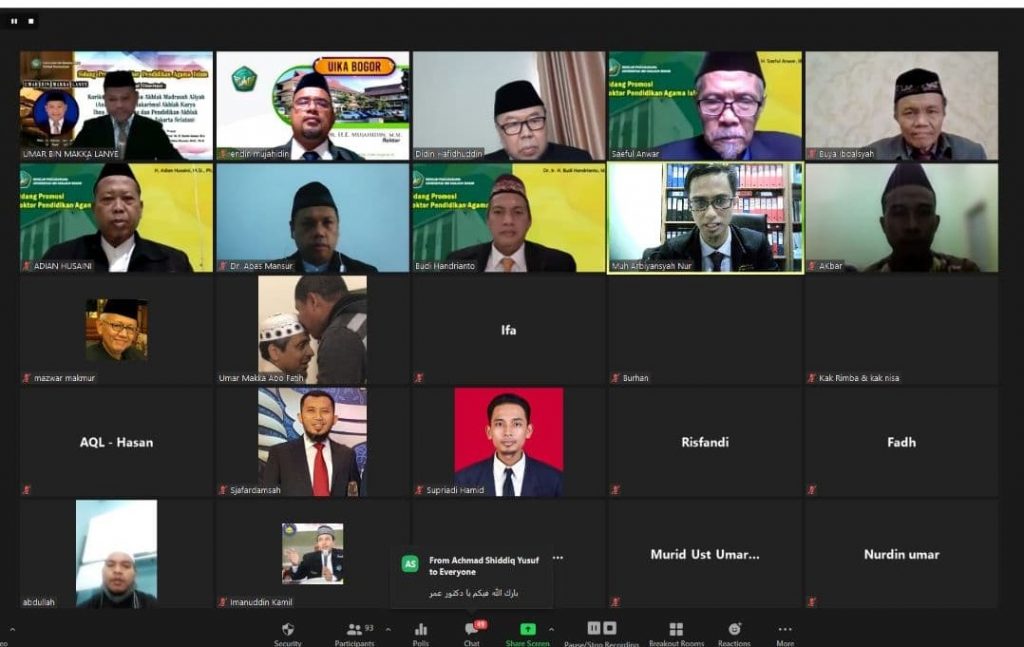 Sidang Terbuka Promosi Doktor Pendidikan Agama Islam dari Promovendus Umar Bin Makka Lanye.