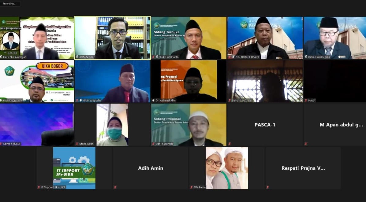 Sidang Terbuka Promosi Doktor Pendidikan Agama Islam dari Promovendus Heru Nur Alamsyah. Pelaksanaan sidang diadakan secara daring (online) dengan judul Disertasi “Konsep Pendidikan Militer Jendral Soedirman dalam Perspektif Pendidikan Islam”.