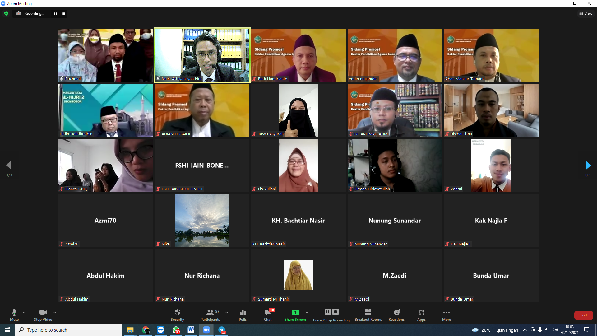 Sidang Terbuka Promosi Doktor Pendidikan Agama Islam dari Promovendus Rachmat. Pelaksanaan sidang diadakan secara daring (online) dengan judul Disertasi