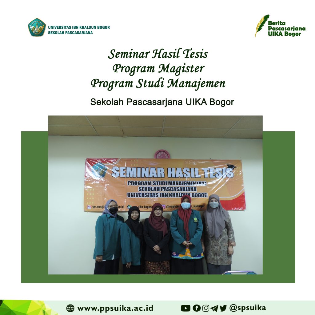 Pada tanggal 17 Juni 2022 M yang bertepatan dengan 17 Dzulqa’dah 1443 H telah dilaksanakan Seminar Hasil Tesis untuk Program Magister Program Studi Manajemen Sekolah Pascasarjana Universitas Ibn Khaldun Bogor.