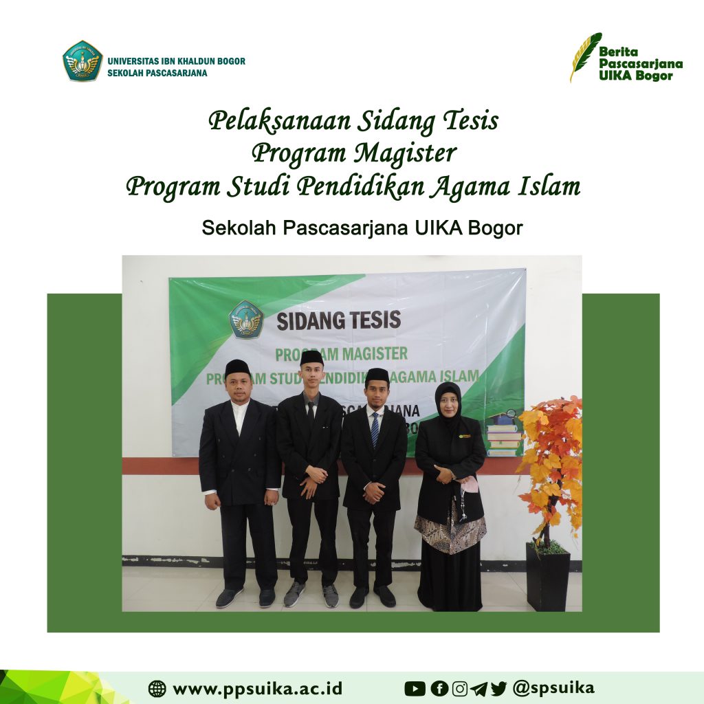 Tanggal 29 Juni 2022 M yang bertepatan dengan 29 Dzulqa’idah 1443 H telah dilaksanakan Sidang Tesis untuk Program Magister Program Studi Pendidikan Agama Islam Sekolah Pascasarjana Universitas Ibn Khaldun Bogor.