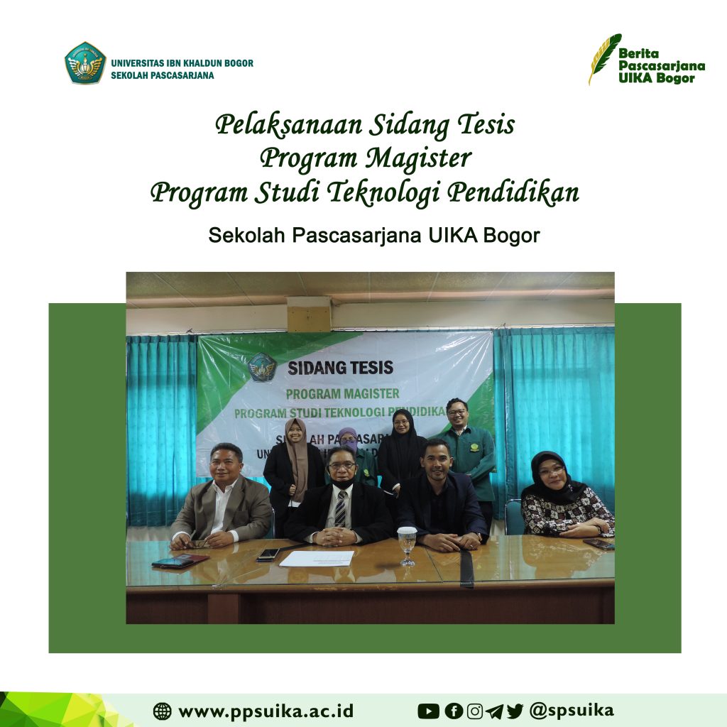 Pada tanggal 30 Agustus 2022 M yang bertepatan dengan 2 Shafar 1444 H telah dilaksanakan Sidang Tesis untuk Program Magister Program Studi Teknologi Pendidikan Sekolah Pascasarjana Universitas Ibn Khaldun Bogor.