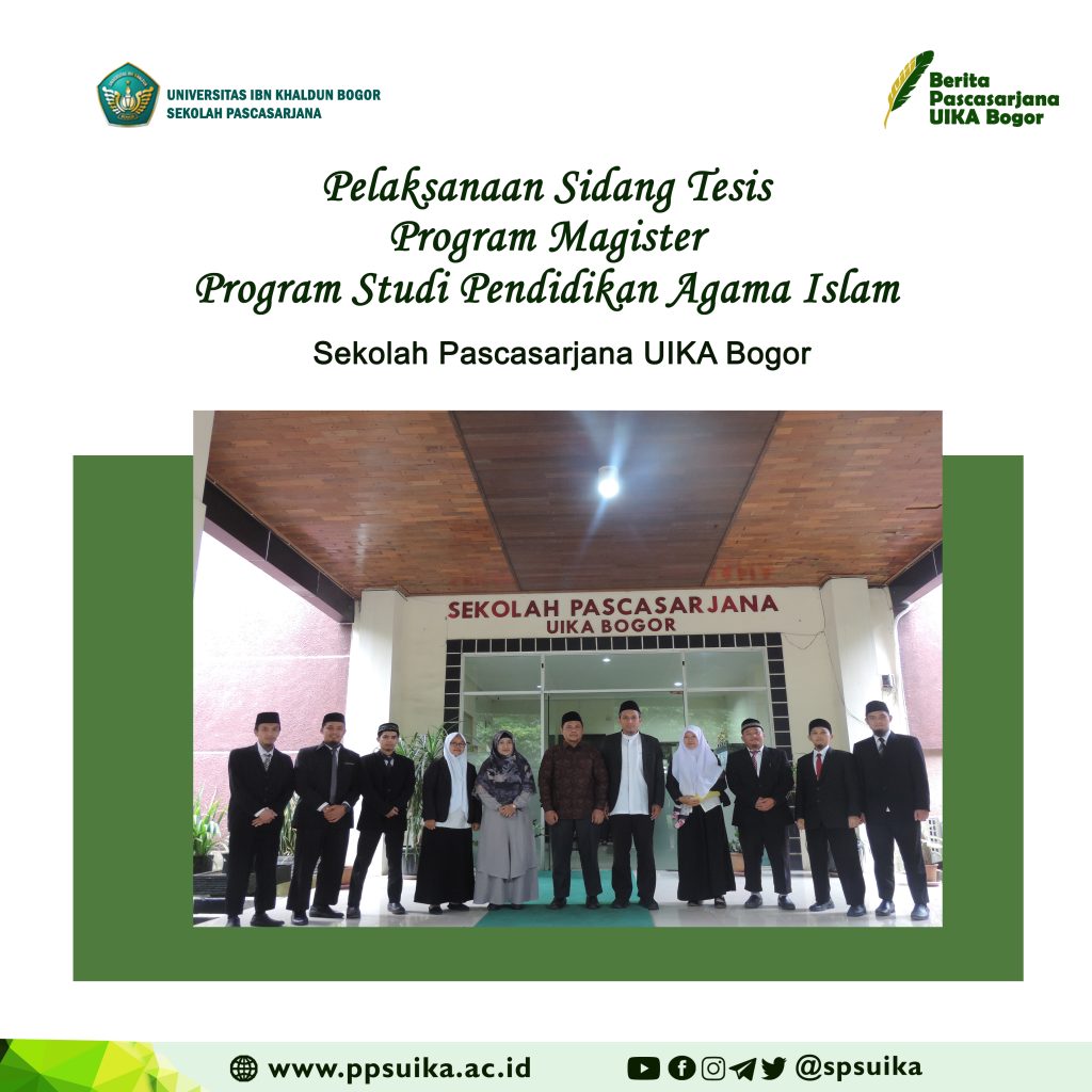 Pada tanggal 07 September  2022 M yang bertepatan dengan 10 Shafar 1444 H telah dilaksanakan Sidang Tesis untuk Program Magister Program Studi Pendidikan Agama Islam Sekolah Pascasarjana Universitas Ibn Khaldun Bogor.