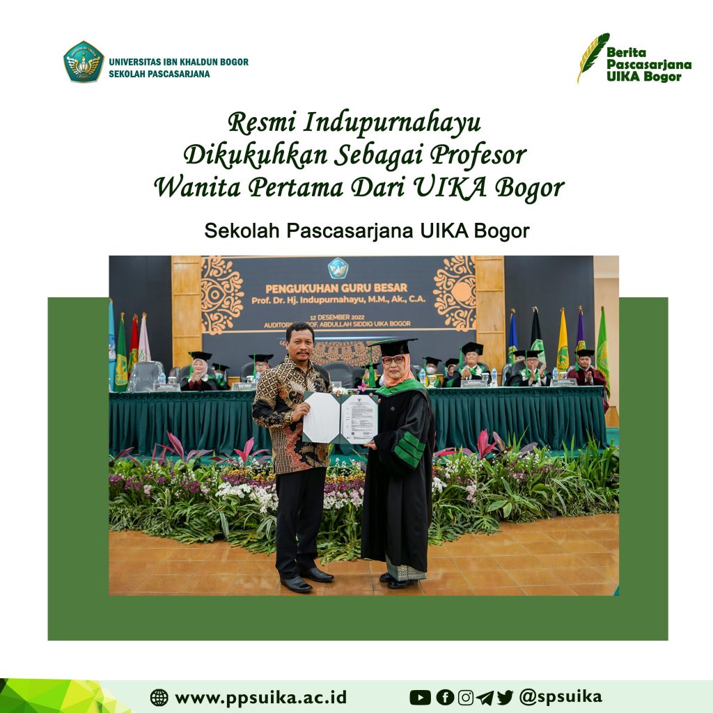 Prof. Dr. Ir. Hj. Indupurnahayu, M.M., AK., CA. ditetapkan sebagai guru besar (Profesor) pada bidang Ilmu Akuntansi Universitas Ibn Khaldun Bogor setelah diajukan pengangkatannya oleh Lembaga Layanan Pendidikan Tinggi Wilayah IV ber-Nomor 34188/MPK.A/KP.05.01/2022 tanggal 1 Mei 2022, dengan raihan angka kredit sebesar 922.