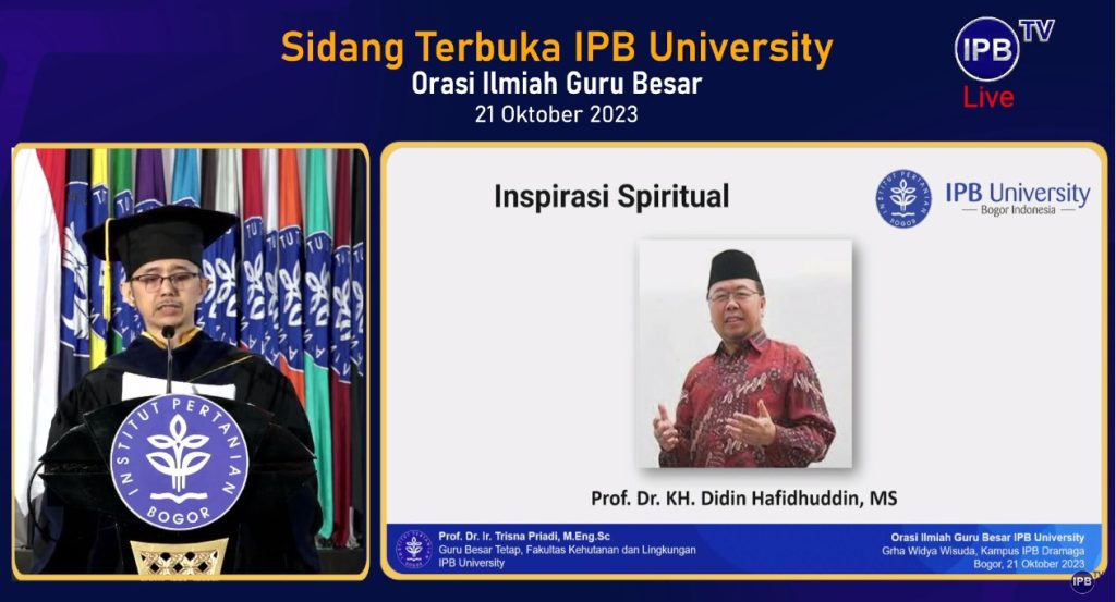 Dalam orasi yang disampaikan oleh Prof. Dr. Ir. Trisna Priadi, M.Eng.Sc. yang merupakan Guru Besar Tetap Fakultas Kehutanan dan Lingkungan IPB Univertisy. Judul orasi yang disampaikan yaitu “Pengembangan Teknologi Peningkatan Mutu Kayu Cepat Tumbuh yang Ramah Lingkungan dan Mendukung Pengelolaan Sumber Daya Hutan Lestari untuk Kesejahteraan Manusia”