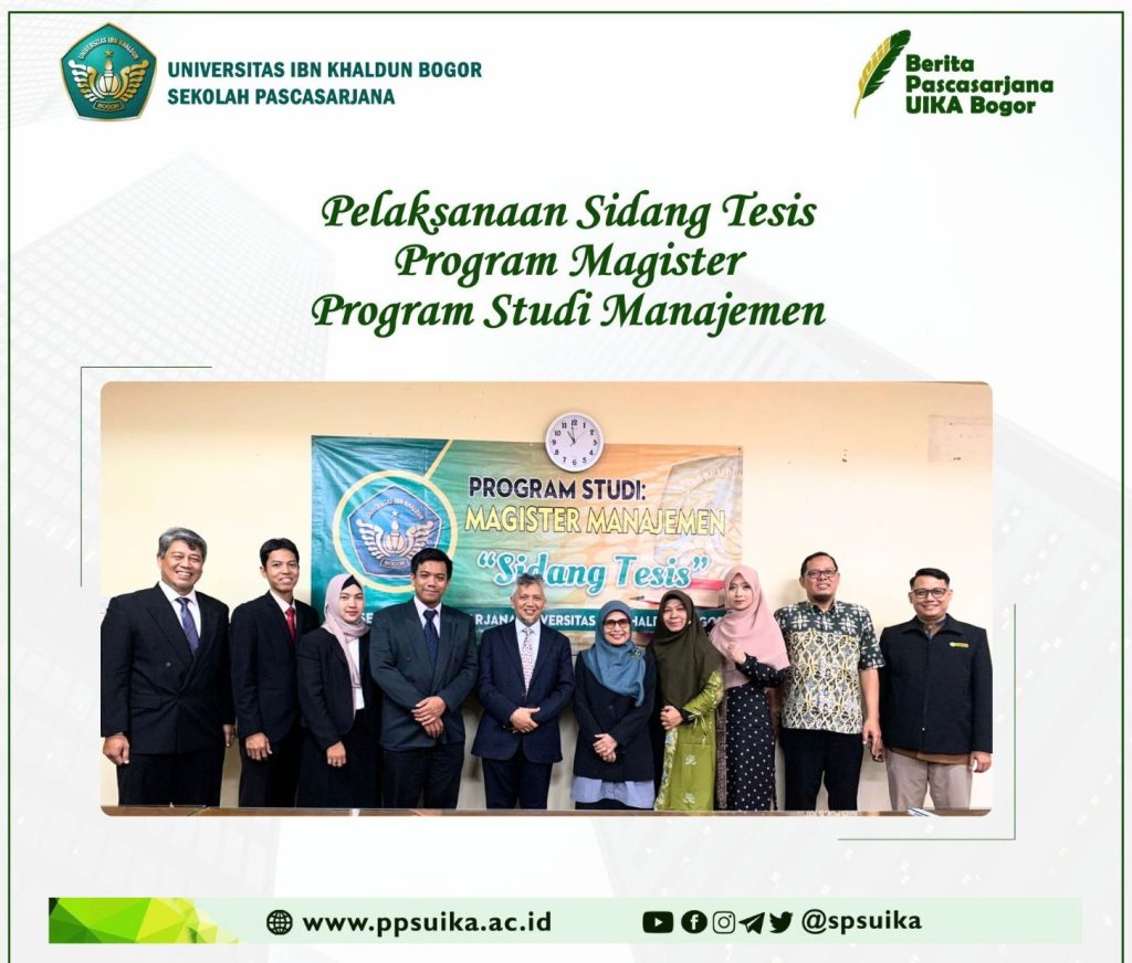 Alhamdulillah telah dilaksanakannya Sidang Tesis Program Magister Program Studi Manajemn pada tanggal 14 Juni 2024.
