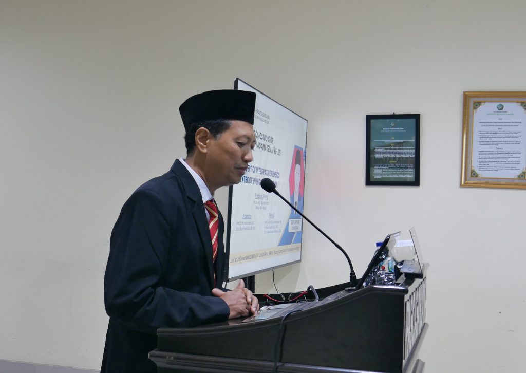 Pelaksanaan sidang diadakan secara Offline dengan judul Disertasi “Konsep Buku Ajar Fisika Integratif di Perguruan Tinggi”
