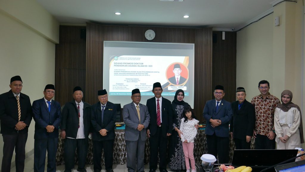 Pelaksanaan sidang diadakan secara Offline dengan judul Disertasi “Konsep Pendidikan Agama Islam (PAI) Berbasis Digital pada Jenjang Madrasah Ibtidaiyah (MI) (Studi Kasus Madrasah Pembangunan UIN Jakarta)”