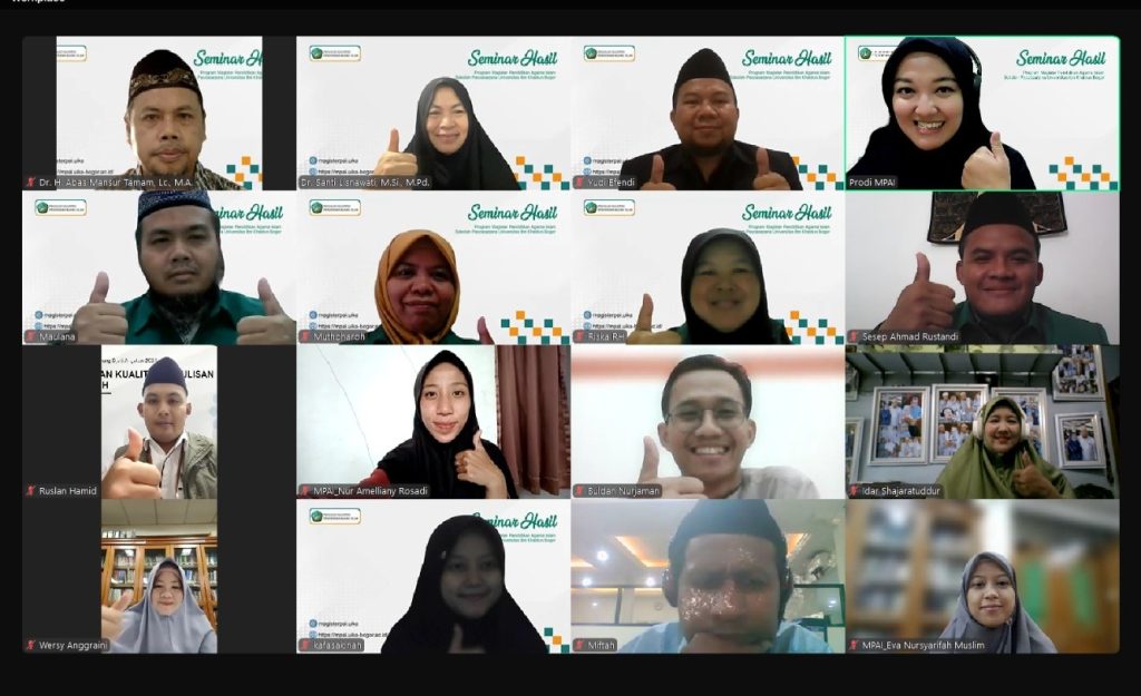 Selasa, 21 Mei 2025 – Program Magister Pendidikan Agama Islam (MPAI) Sekolah Pascasarjana UIKA Bogor kembali menyelenggarakan Seminar Hasil Tesis yang diikuti oleh enam mahasiswa. Kegiatan berlangsung secara online melalui media konferensi jarak jauh (zoom).