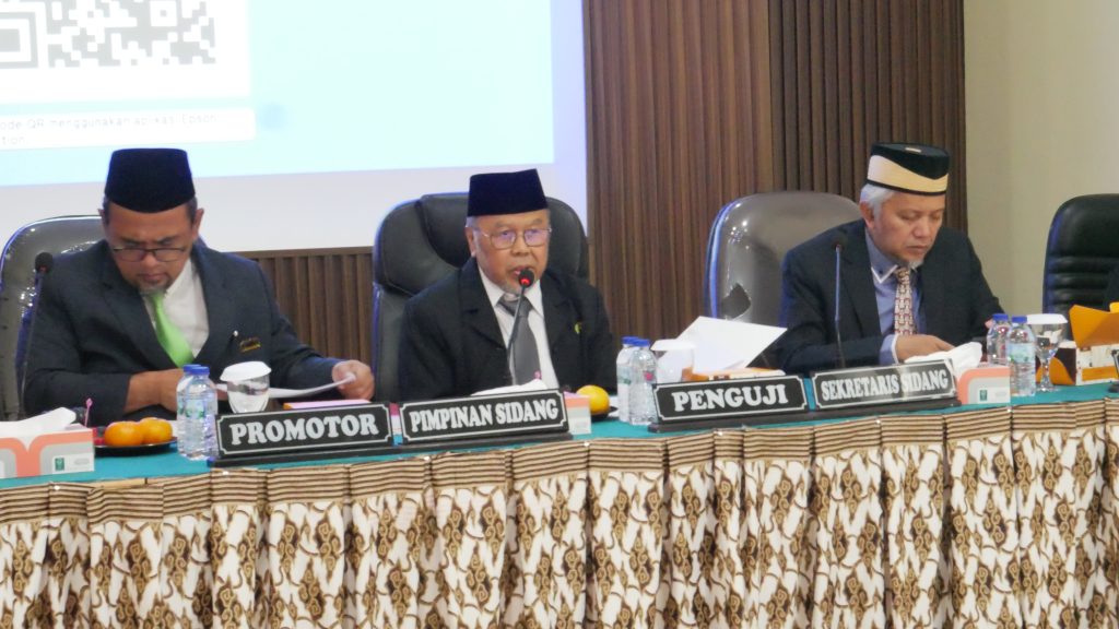 Sidang Promosi Doktor ini dipimpin oleh Rektor Universitas Ibn Khaldun Bogor yaitu Prof. Dr. H.E Mujahidin, M.Si., sebagai Promotor yaitu Prof. Dr. H.E Mujahidin, M.Si., Prof. Dr. H. Hasbi Indra, M.A., dan H. Hendri Tanjung, Ph.D.