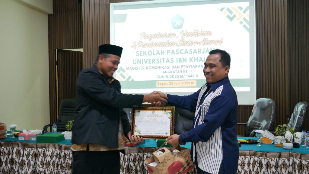 Bogor, 25 Juni 2025 – Alhamdulillah, telah terlaksana dengan khidmat dan penuh rasa syukur acara Yudisium, Tasyakuran, serta Pengangkatan Pengurus Ikatan Alumni (IKA) dan Himpunan Mahasiswa (HIMA) Program Studi Magister Komunikasi dan Penyiaran Islam (MKPI) Universitas Ibn Khaldun Bogor.