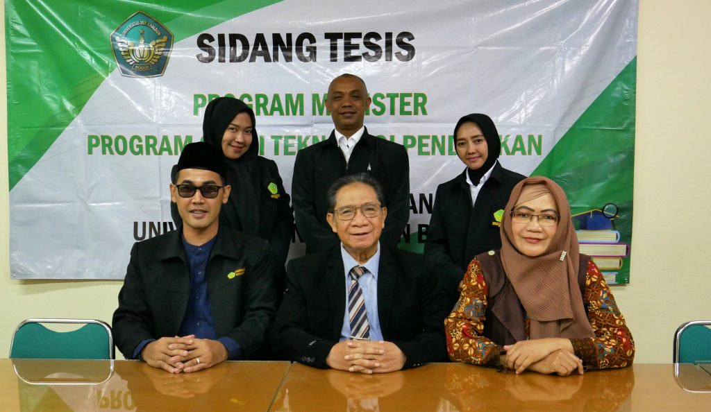 Hadir sebagai penguji, Ketua Program Magister Teknologi Pendidikan, Prof. Dr. H. Zainal Abidin Arif, M.Si,. Sekretaris Program Magister Teknologi Pendidikan, Dr. Rudi Hartono, M.Pd, serta Dosen pengajar yaitu Dr. Kurniati, M.Si dan Dr. Masitowati Gatot, M.Ed., yang secara seksama menilai dan menguji hasil penelitian mahasiswa.