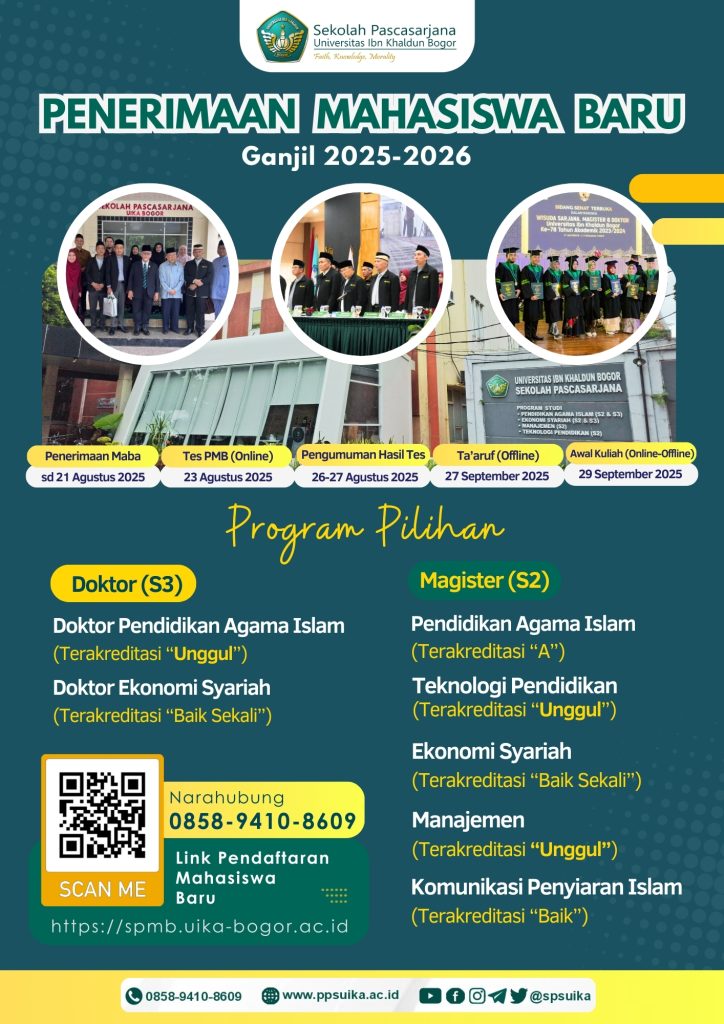 “Segera daftarkan diri Anda dan jadilah bagian dari keluarga besar Sekolah Pascasarjana UIKA Bogor dalam bingkai Iman, Ilmu dan Amal!”