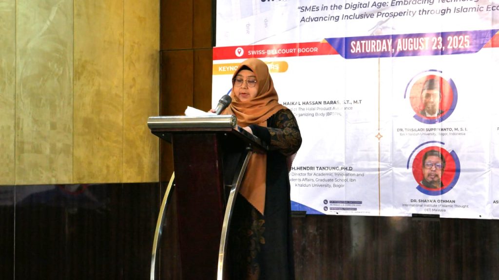 Dr. Shaya’a Othman dari International Institute of Islamic Thought, Malaysia membahas bentuk pengembangan literasi digital di kalangan wirausahawan Islam dalam konteks ekonomi Islam, yang berlangsung di Universitas Ibn Khaldun Bogor. Ia menyampaikan bahwa literasi digital sebagai pondasi penting bagi wirausahawan Islam modern serta mengaitkan ekonomi Islam dengan perkembangan teknologi dan inovasi berbasis digital.