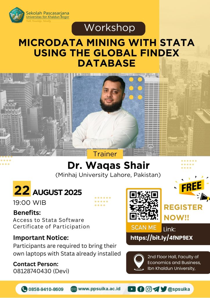 Hadirilah Workshop “Microdata Mining with Stata Using the Global Findex Database” bersama Dr. Waqas Shair (Minhaj University Lahore, Pakistan).