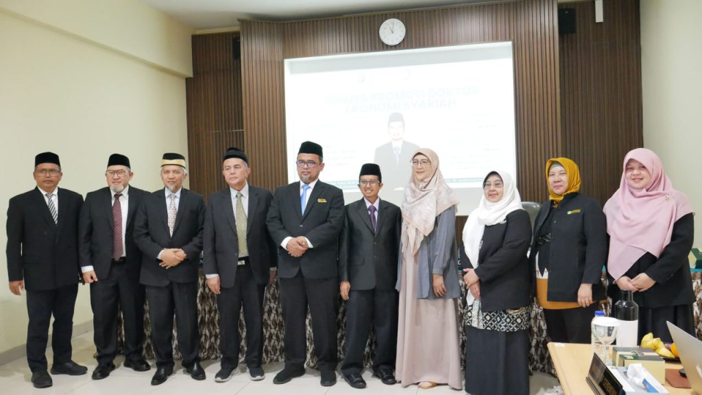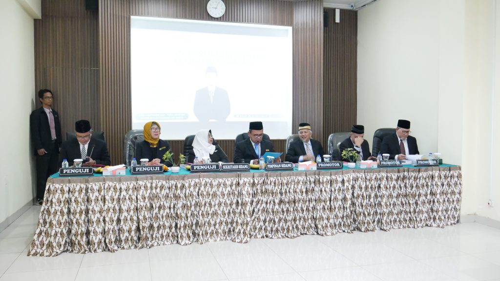 Sidang ini turut menghadirkan tim penguji yaitu Prof. Dr. Hj. Maemunah, M.Ag., Prof. Dr. H. Jaih Mubarok, S.E., M.H., M.Ag., dan Dr. Sri Marti Pramudena., SE., MM., CISP.