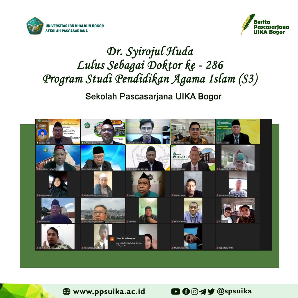 Muh. Arbiansyah Nur, S.Si. menuturkan bahwa pemaparan hasil disertasi dipresentasikan dengan baik oleh Promovendus. Sehingga tim penguji dan promotor memberikan Yudisium dengan predikat Sangat Memuaskan. Dengan ini Syirojul Huda Resmi menjadi Doktor Ke-286 UIKA Bogor.