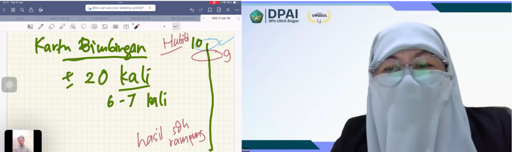 Kegiatan dilaksanakan secara hibrida selama satu setengah jam, berpusat di Gedung Pascasarjana UIKA Bogor dan terhubung secara daring melalui platform Zoom bagi mahasiswa yang berada di luar kota.