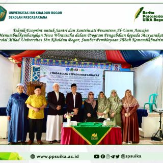 Berita / Kegiatan / Pengabdian Masyarakat July 25, 2024 Magister Manajemen UIKA Bogor Berkolaborasi Dalam Latih Para Santri & Guru Pesantren Olah Bahan Alami Bernilai Jual Tinggi Dengan Teknik Ecoprint
