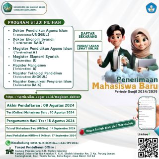 Pengumuman June 6, 2024 Penerimaan Mahasiswa Baru Sekolah Pascasarjana UIKA Bogor (Magister S2 dan Doktor S3) TA Ganjil 2024/2025