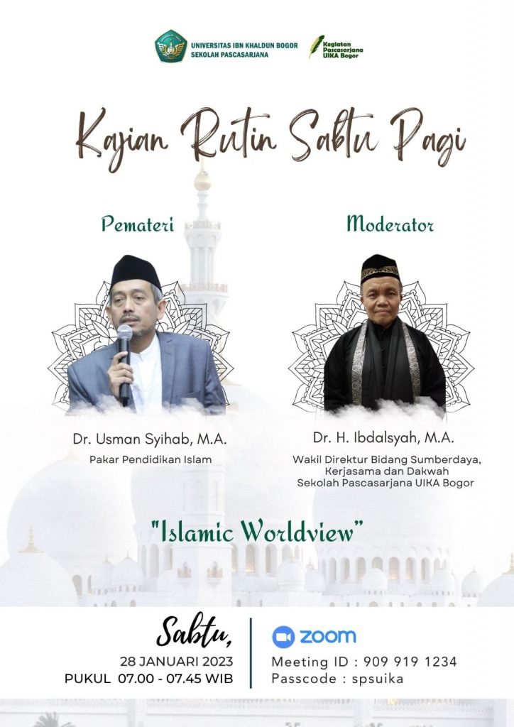 Pengajian Rutin Sekolah Pascasarjana, Dr. Usman Syihab, M.A. jelaskan Ruang Lingkup Islamic WorldView(UIKA-13/02/2023) Dr. Usman Syihab, M.A. Pakar Pendidikan Islam…