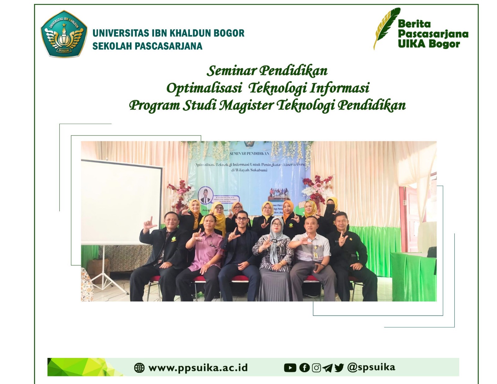 Magister Teknologi Pendidikan Pascasarjana UIKA Bogor dengan Kelompok Kerja Kepala Sekolah (KKKS) mengadakan Seminar Pendidikan tentang Optimalisasi Teknologi Pendidikan